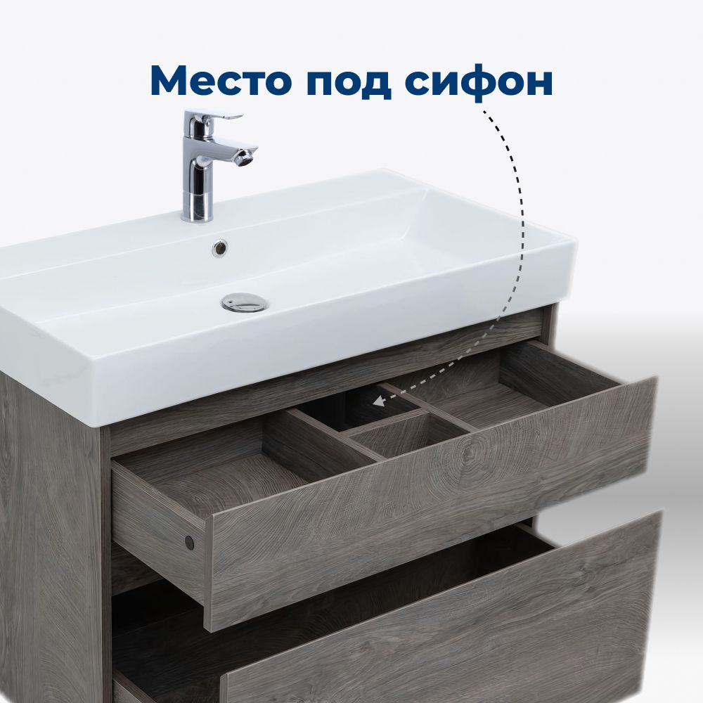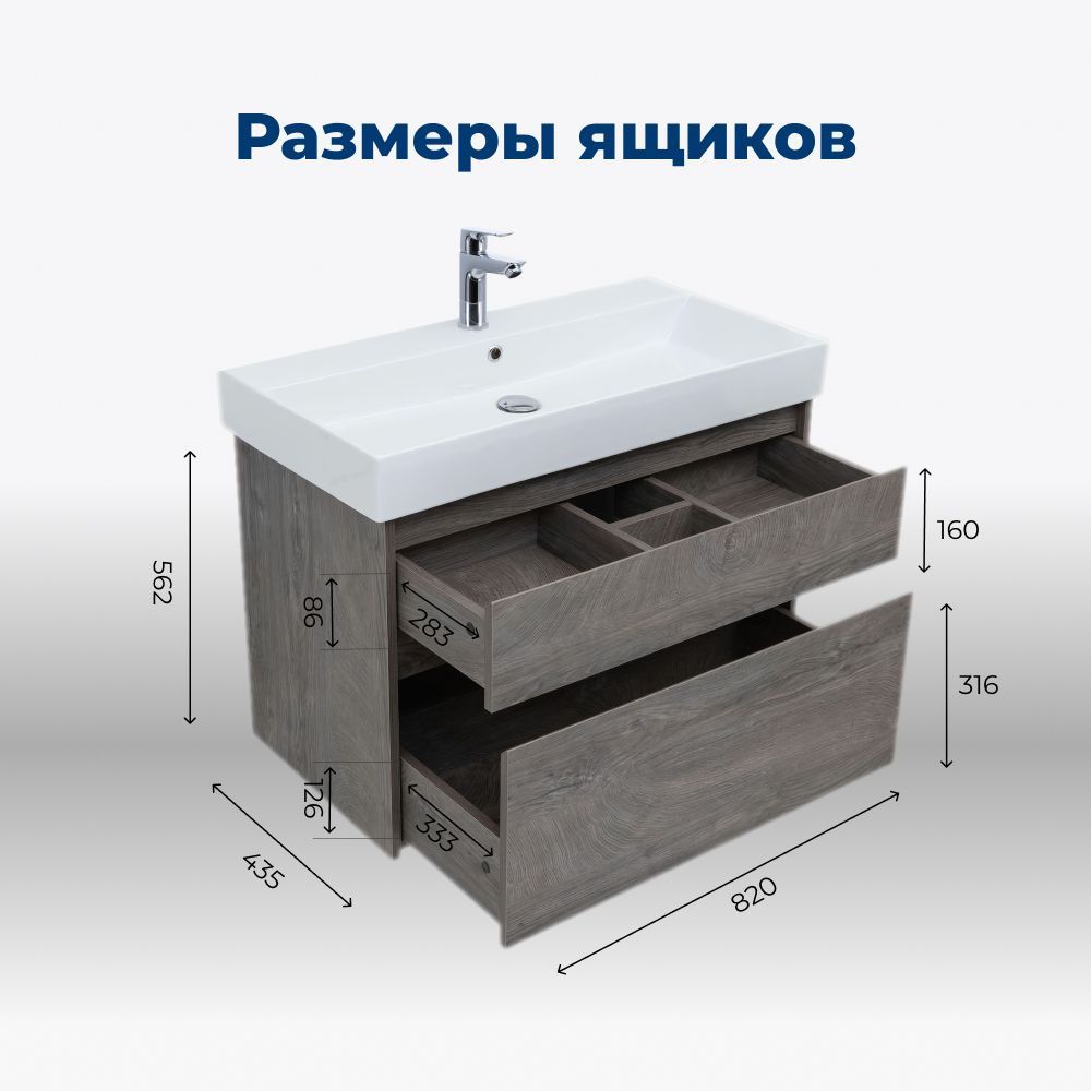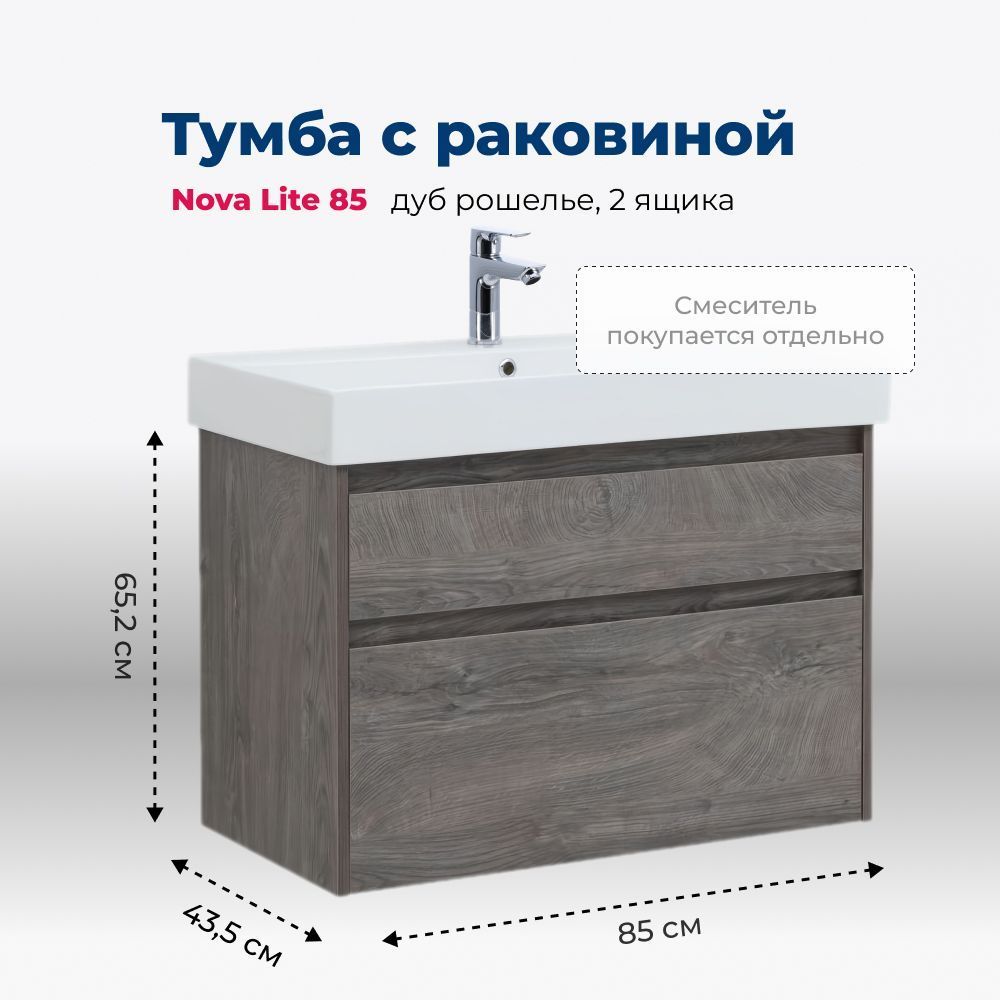 Тумба с раковиной в ванную комнату бренда Aquanet выполнена в стиле модерн и входит в нашу коллекцию мебели Nova Lite. Представленная коллекция мебели для ванных комнат осчастливила сотни покупателей, так как они приобрели сочетание дизайна, качества и функциональности. Важный момент при выборе тумбы для умывальника / раковины - это материалы. Они должны быть адаптированы к эксплуатации в условиях повышенной влажности. Влагостойкий ЛДСП - материал, из которого выполнен корпус изделия, фасад - из влагостойкого ЛДСП. При монтаже напольной/подвесной тумбы в первую очередь необходимо учесть ширину, которая равна 82 см. Тумба в цвете темное дерево (дуб рошелье) освежит Вашу ванну и будет отлично сочетатся с сантехникой. Тумба в ванную также обеспечит вам экономию места, так как в ней предусмотрены вместительные ящики, оснащенные механизмом доводчика.