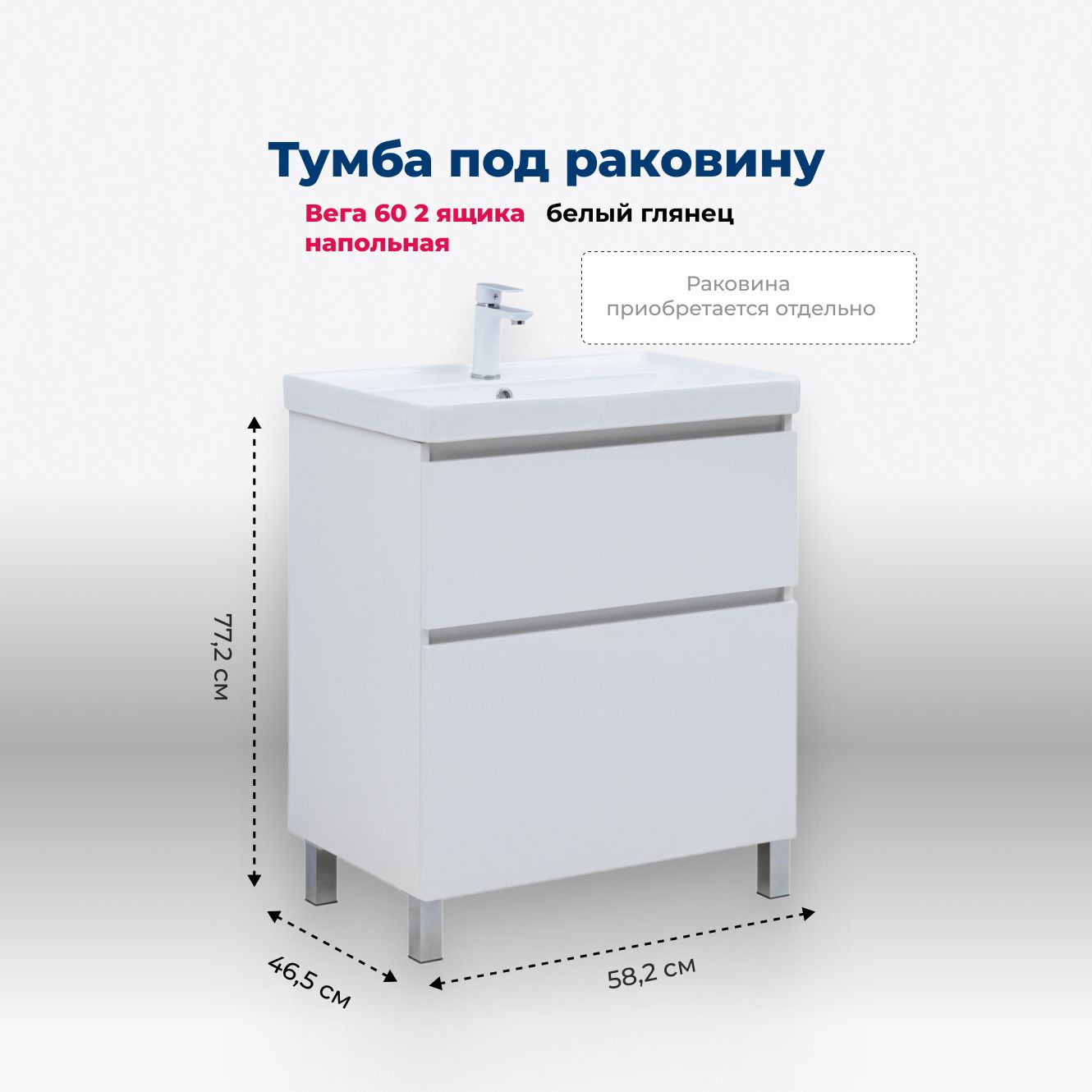 Тумба под раковину Aquanet Вега 60 напольная в отделке "белый глянец" – это воплощение элегантности и функциональности для современной ванной комнаты. Корпус и фасады, выполненные из влагостойкой ЛДСП с эмалевым покрытием, гарантируют долговечность и безупречный внешний вид, устойчивый к воздействию влаги. Глянцевая поверхность придает изделию изысканный блеск и легко очищается.