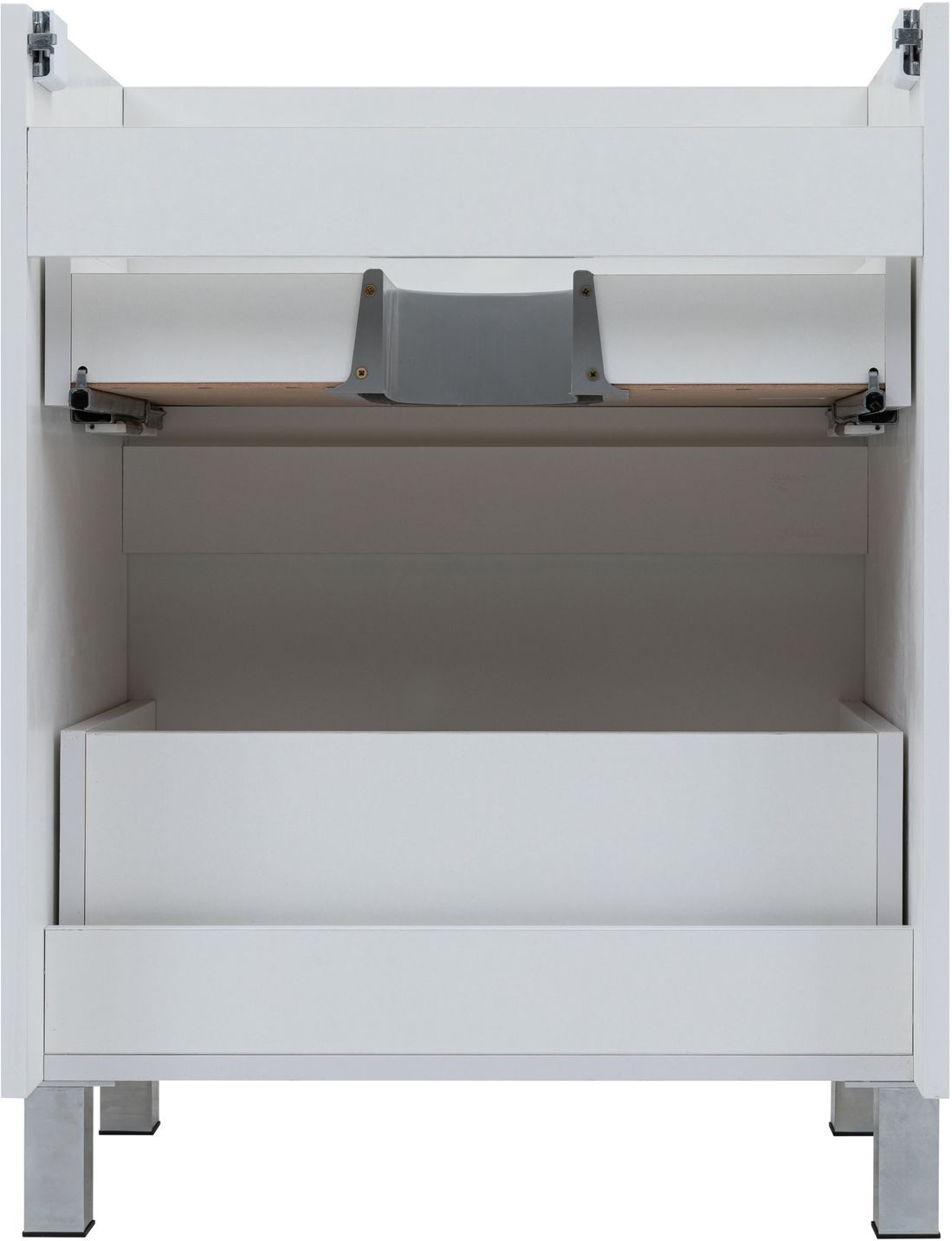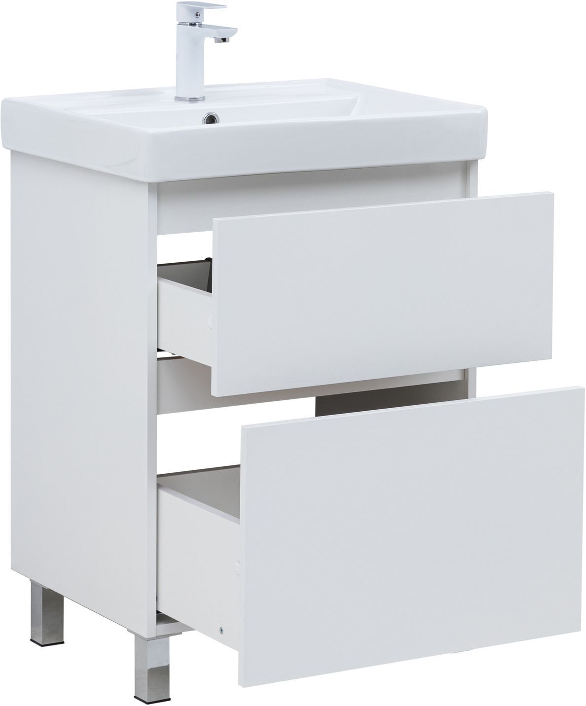 Пластиковое ограждение сифона в сером цвете аккуратно скрывает коммуникации. Прочное дно нижнего ящика, изготовленное из влагостойкой ЛДСП толщиной 16 мм, позволяет хранить даже тяжелые предметы. Предусмотренное место за нижним ящиком для подводки коммуникаций снизу упрощает монтаж и подключение сантехники. Aquanet Вега 60 – это оптимальное решение для создания стильного и практичного интерьера ванной комнаты.