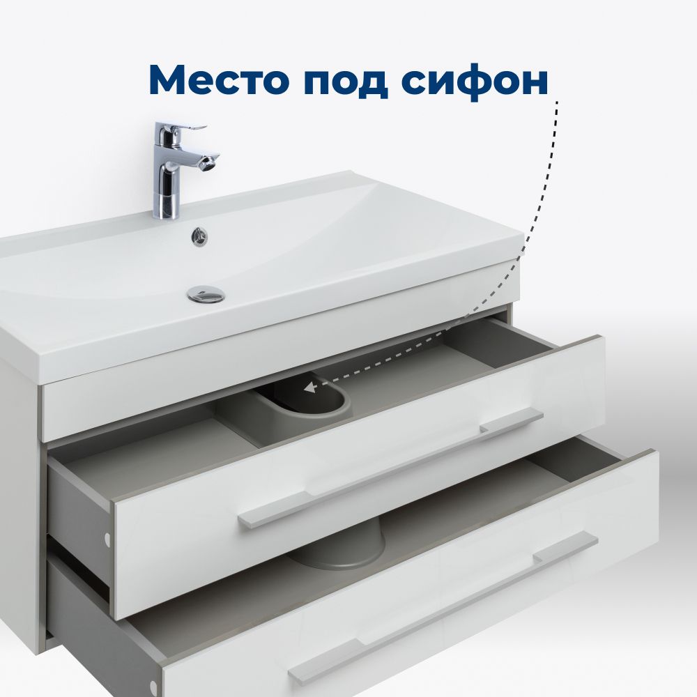 Подвесная тумба с раковиной серии Верона с покрытием из качественного акрила — такая отделка придает эффектности внешнему виду и повышает уровень влагозащиты. Применение акрила в производстве мебели для ванных — уникальное предложение, созданное на специализированной линии предприятия. Навесной модуль имеет вместительные ящики, удобный для хранения полотенец. Экстравагантная геометричность формы подчеркнута горизонтальными линиями фурнитуры ручек выдвижных ящиков. Нейтральный цвет тумбы Верона универсален и ее можно совмещать с любыми оттенками в интерьере и разнообразием креативных идей. Сделать навесной мебельный комплект максимально цельным поможет подкатная тумба Верона, выполненная в том же стиле. Она добавит места для хранения банных принадлежностей и станет удобной площадкой, которая может использоваться как подставка или даже сиденье.