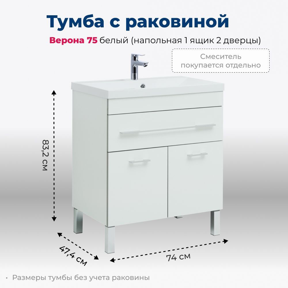 Тумба напольная с раковиной серии Верона с покрытием из качественного акрила — такая отделка придает эффектности внешнему виду и повышает уровень влагозащиты. Применение акрила в производстве мебели для ванных — уникальное предложение, созданное на специализированной линии предприятия. Нейтральный цвет универсален, потому мебель Верона можно совмещать с любыми оттенками в интерьере и разнообразием креативных идей. Экстравагантная геометричность формы подчеркнута горизонтальными линиями фурнитуры ручек выдвижных ящиков. Их вместительное пространство обеспечит дополнительное место хранения банных принадлежностей.