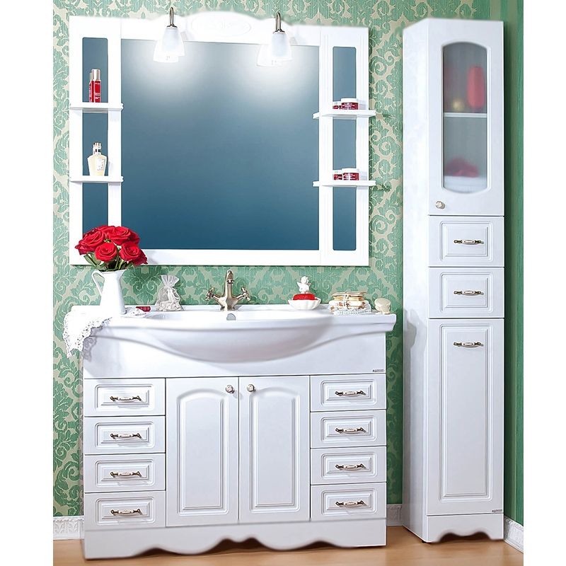 Тумба под раковину Бриклаер Анна 120 с двумя распашными дверцами и с восемью выдвижными ящиками.