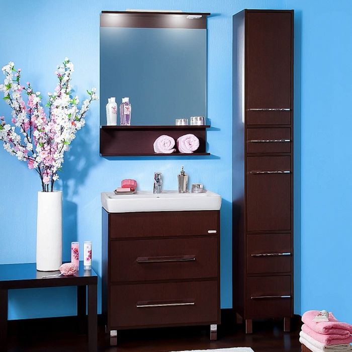 Тумба под раковину Бриклаер Чили 70 на ножках, с двумя выдвижными ящиками, с вытянутыми хромированными ручками. Выполнена в стиле минимализм. Корпус и фасад выполнены из ЛДСП цвета экзотического темного дерева. Тумба проявляет устойчивость к влажному воздуху и длительное время сохраняет свой первоначальный внешний вид.