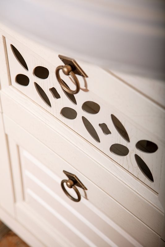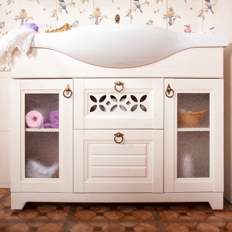 Тумба под раковину Бриклаер Кантри 120 с двумя распашными дверцами и двумя выдвижными ящиками сочетает в себе элегантность и практичность. Филенчатый фасад украшен прорезями. Тумба предназначена для использования в помещениях с повышенной влажностью и отлично впишется в интерьер любой ванной комнаты.
