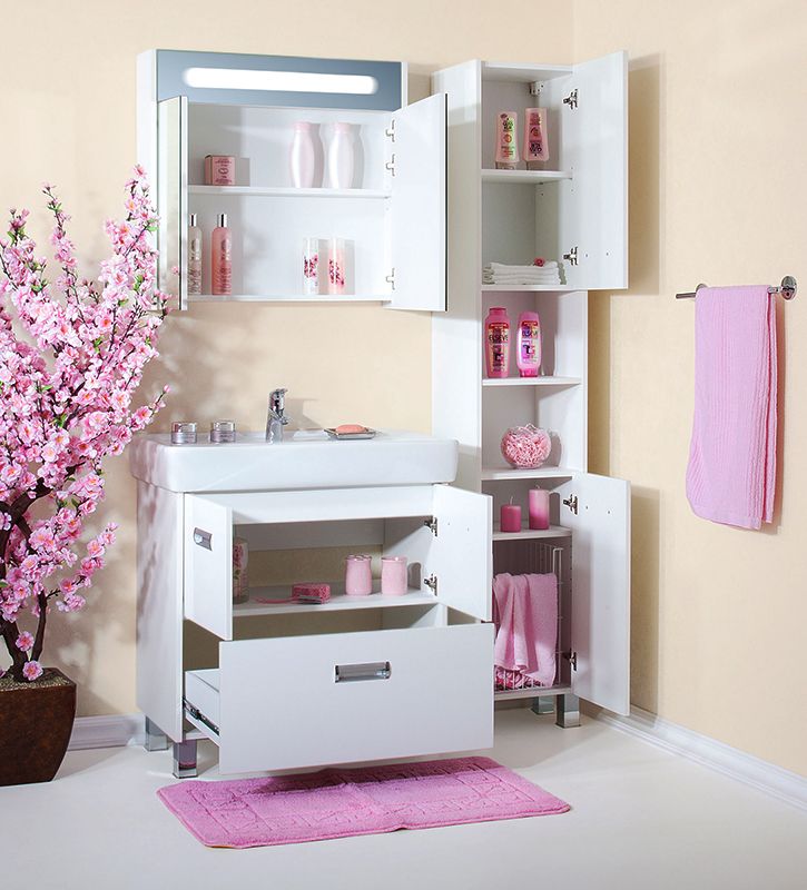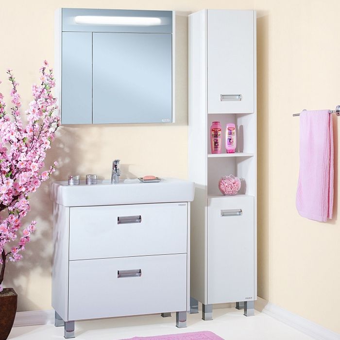 Белоснежная тумба под раковину Бриклаер Палермо 80 на ножках, с двумя выдвижными ящиками, дарит ощущение свежести, чистоты и уюта. Корпус выполнен из белого ЛДСП, фасад из белого ЛДСП, покрытого глянцевым лаком, ручки из металла, ножки из пластика. Тумба проявляет устойчивость к влажному воздуху и длительное время сохраняет свой первоначальный внешний вид.