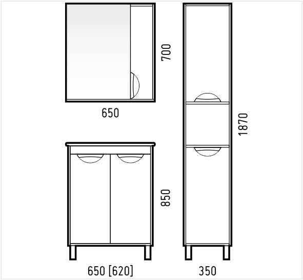 У тумбы 2 распашные двери. Позади дверей есть полки. Боковины и передняя кромка красятся в белую глянцевую эмаль.