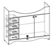 Тумба оснащена четырьмя выдвижными ящиками слева и двумя дверцами. Фасады - с фрезеровкой.