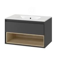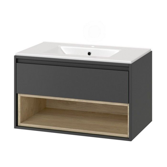 Тумба под раковину EXCELLENT Tuto 80 см (серый/дуб), 1 ящик