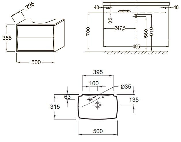- 1 плавно закрывающийся выдвижной ящик вверху.