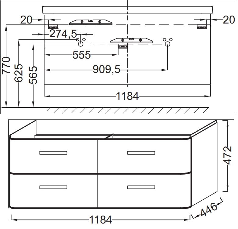 1184 мм |