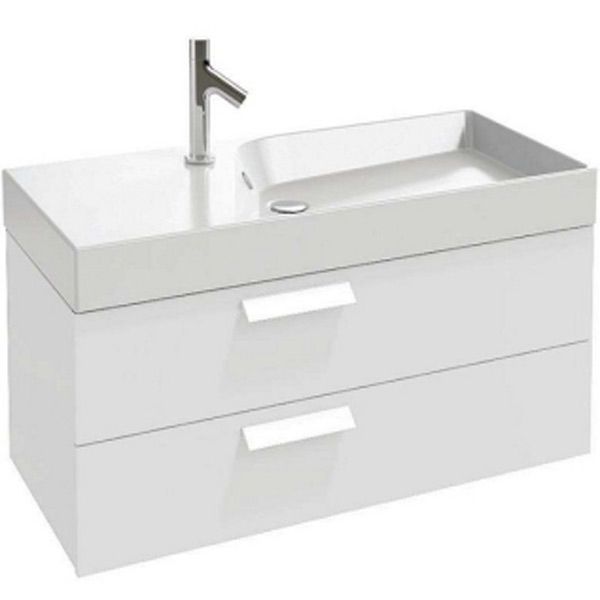 Подвесная тумба под раковину Jacob Delafon Rythmik 100 EB1304-G1C. Прямые, резкие линии тумбы придадут интерьеру ванной комнаты особый шик.