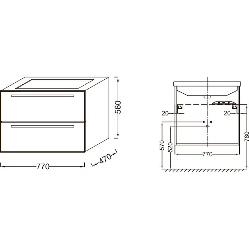 - Габариты корпуса тумбы (ШхВхД): 77 х 56 х 47 см.