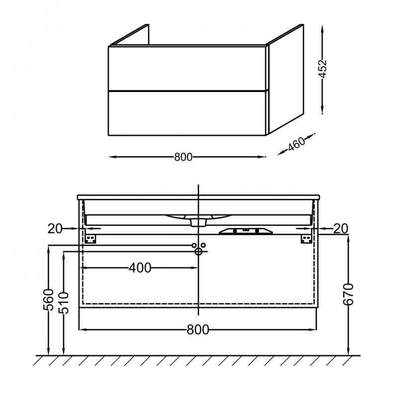 - Габариты корпуса тумбы (ШхВхД): 80 х 45 х 46 см.