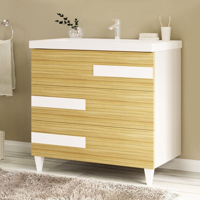 Элегантная комбинированная тумба под раковину Marka One Mix 80Н ПП в Коко-Боло (У69546) с тремя выдвижными ящиками с ручками выполнена в минималистичном современном стиле. В дизайне преобладают прямые линии и правильные формы, тумба хорошо дополнит интерьер любой ванной комнаты.