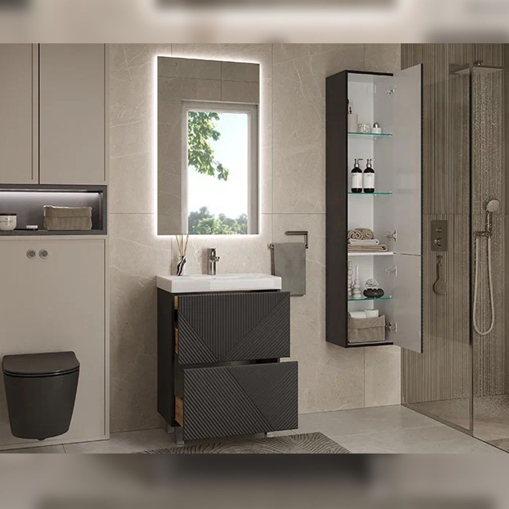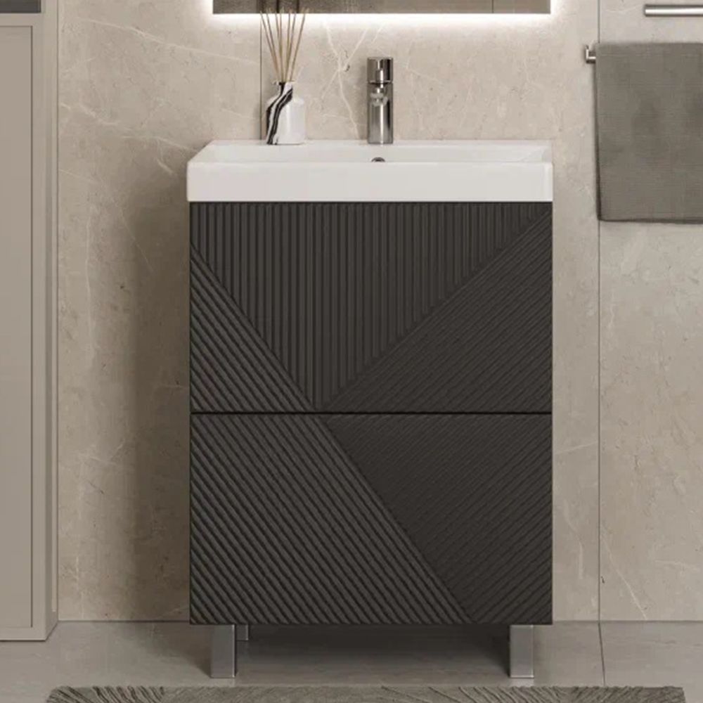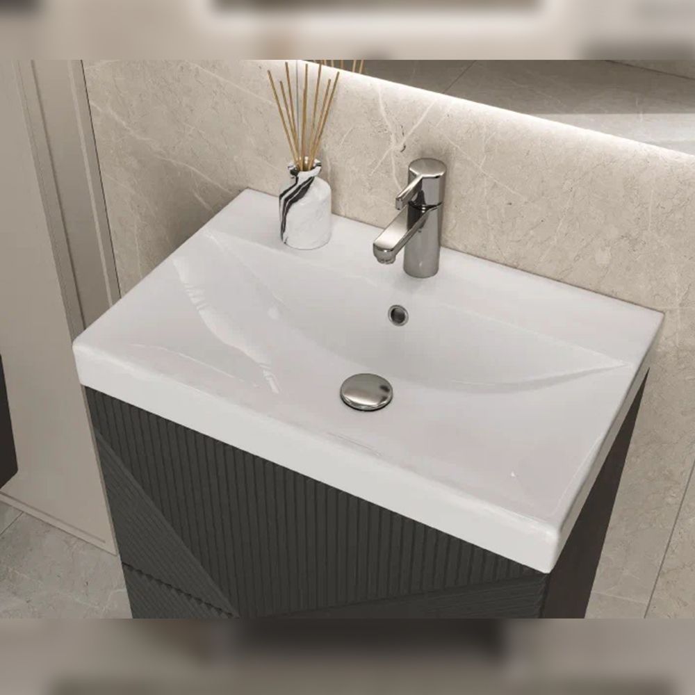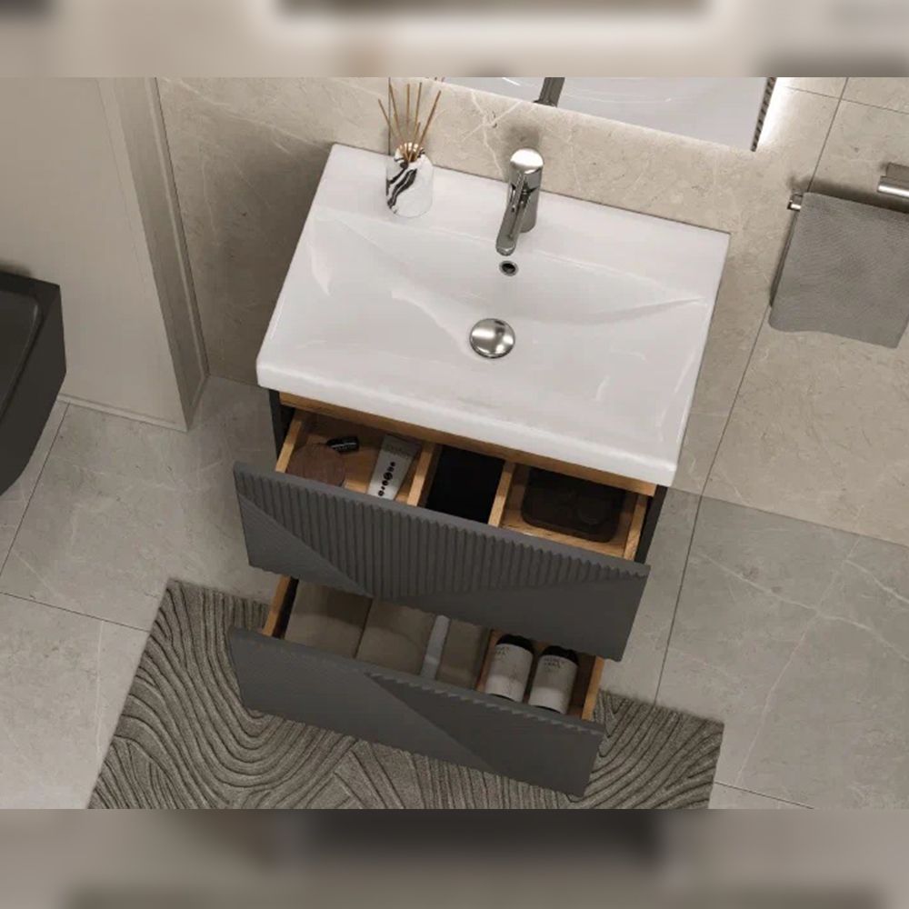 Тумба под раковину напольная Velvex Edge tn.EDG.9696.60.2Y графит, 60 см: 2 выдвижных ящика с механизмом открывания push-to-open.