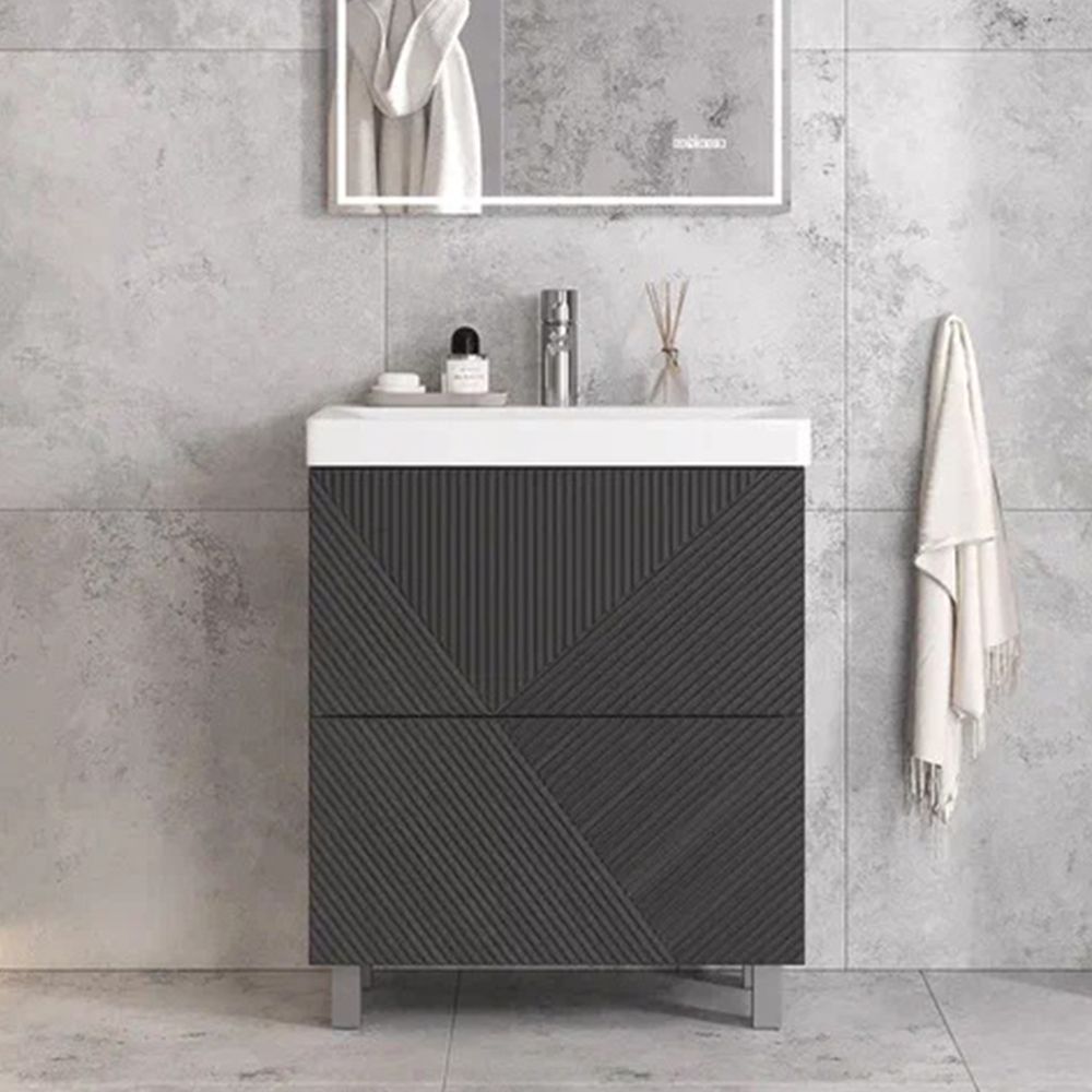 Тумба под раковину напольная Velvex Edge tn.EDG.9696.70.2Y графит, 70 см: 2 выдвижных ящика с механизмом открывания push-to-open.