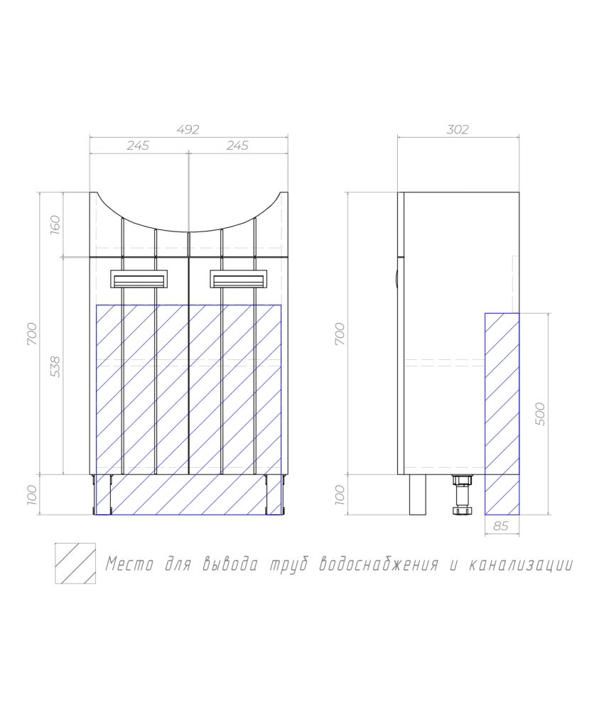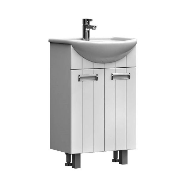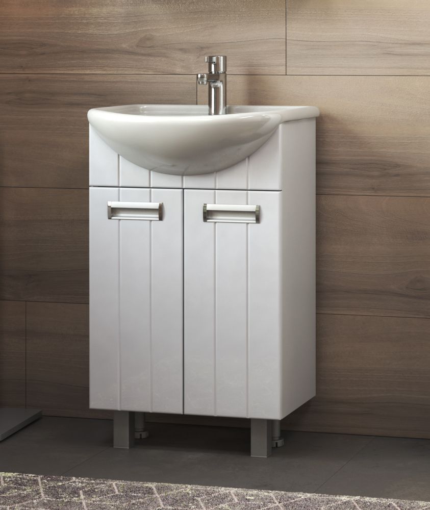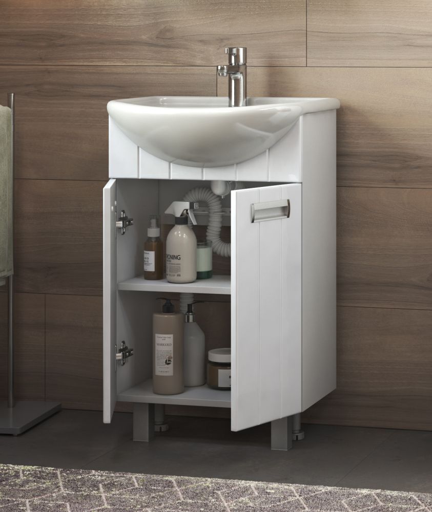 2 дверцы; 1 полка ЛДСП; ручка врезная металлическая хромированная, опоры квадратные регулируемые. Материал корпуса: влагостойкая ЛДСП Материал фасадов: ЛМДФ Покрытие: пленка ПВХ Дверцы: петли с механизмом плавного закрывания