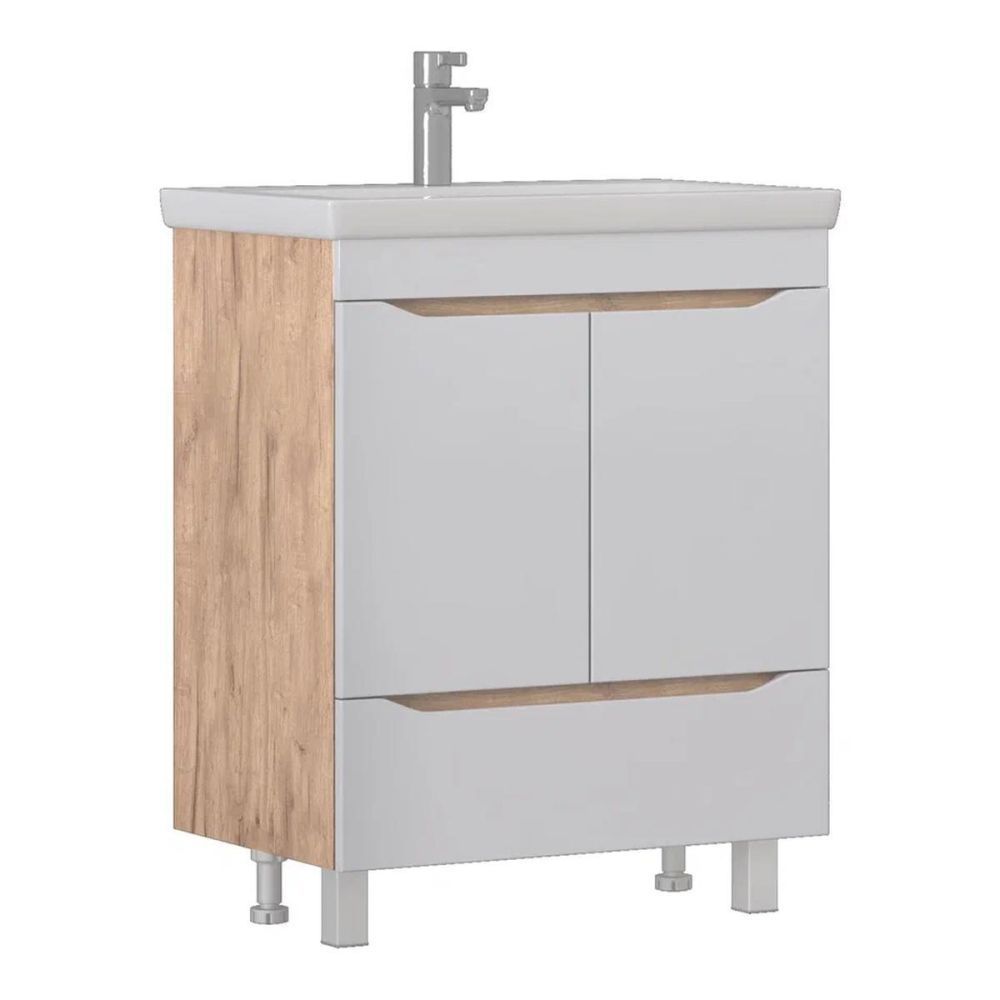 Тумба под раковину напольная VIGO Grani 285 дуб золотой, 70 см. Гарантийный срок 2 года. Монтаж: напольный. Доводчик: да. Нажимной механизм: нет.