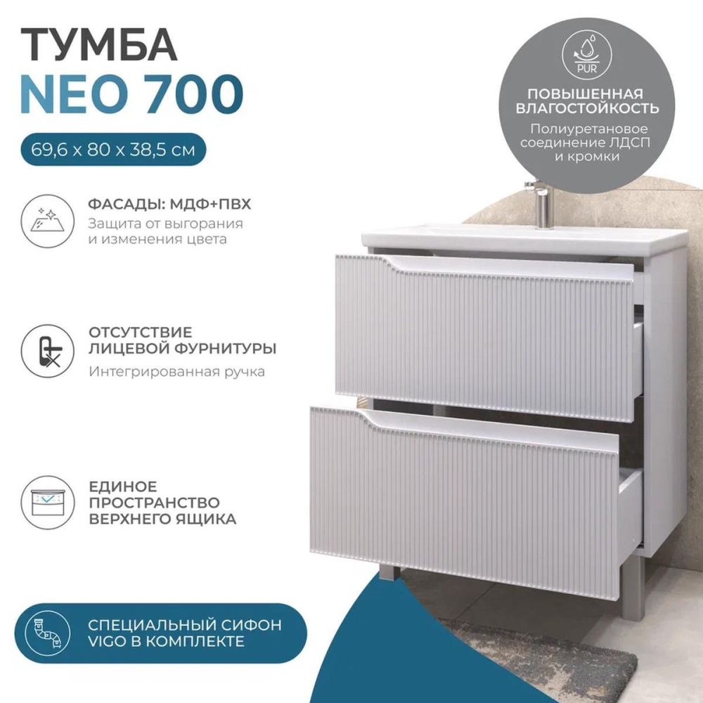 Тумба под раковину напольная VIGO Neo 017, 70 см. Гарантийный срок 2 года. Монтаж: напольный. Доводчик: да. Нажимной механизм: нет.