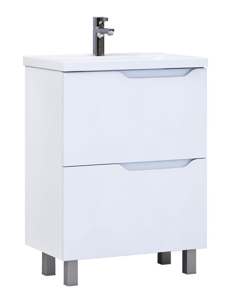 Материал корпуса: влагостойкая ЛДСП Материал фасада: ЛМДФ Покрытие фасада: пленка ПВХ Ящики: направляющие полного выдвижения Отсутствие лицевой фурнитуры – интегрированная в фасад ручка