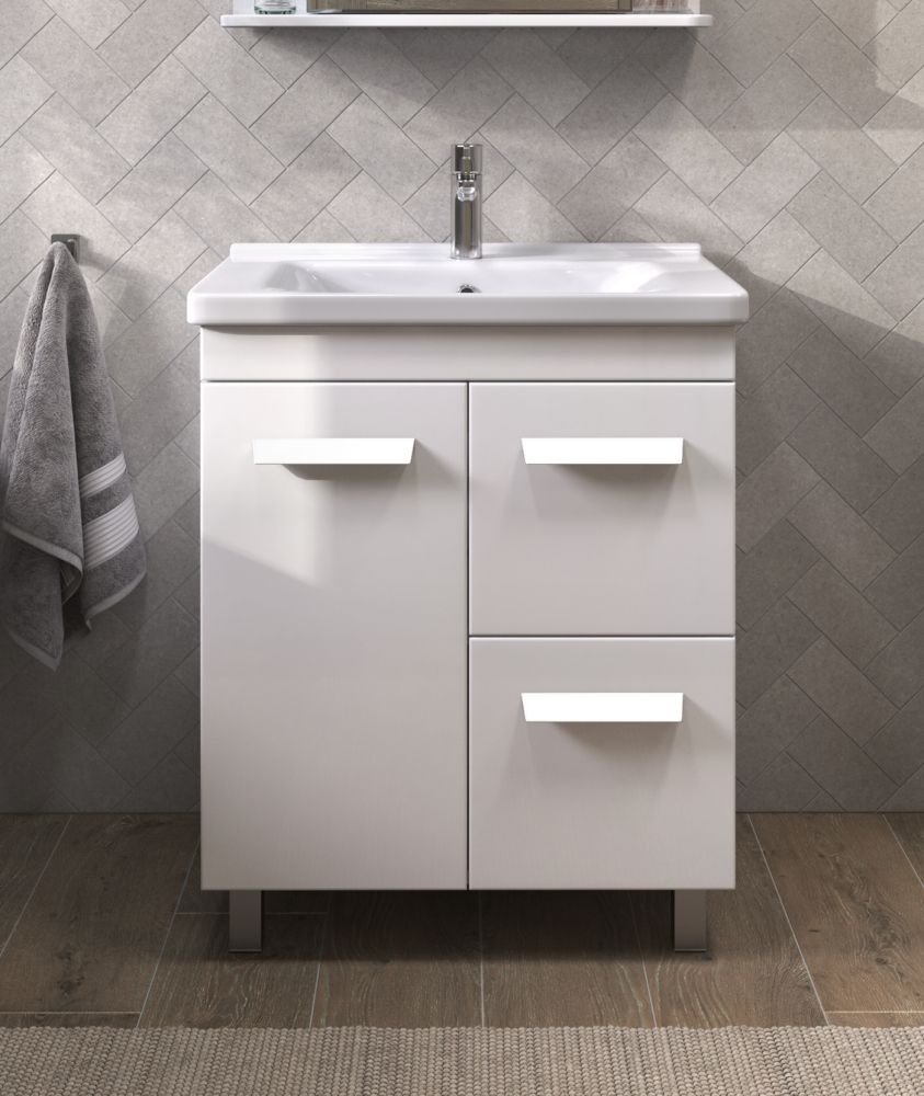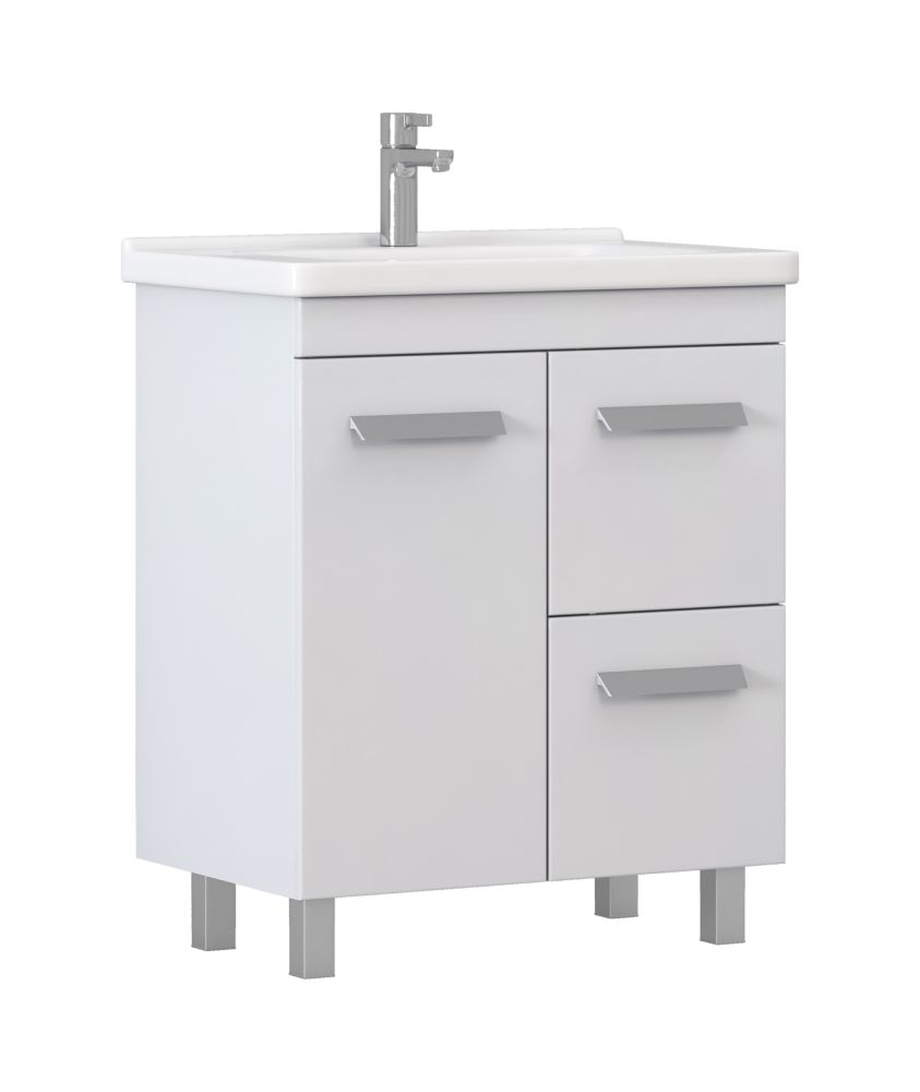 1 дверца; 2 выдвижных ящика; ручка пластиковая матовый хром; опоры квадратные регулируемые. Крепление к стене не предусмотрено. Материал корпуса: влагостойкая ЛДСП. Материал фасадов: ЛМДФ Покрытие: пленка ПВХ Ящики: направляющие полного выдвижения