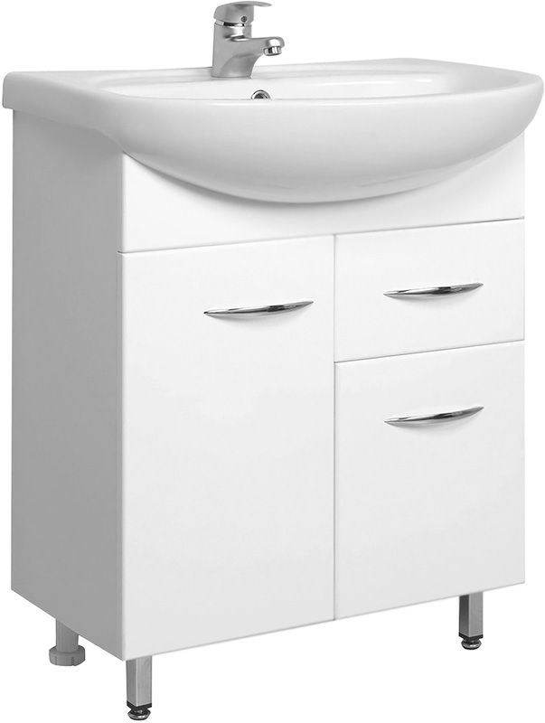Напольная тумба под раковину Onika Стелла 65 106503 с двумя распашными дверцами и с одним выдвижным ящиком. Надежная работа подвижных механизмов благодаря тщательно подобранной качественной фурнитуре. Мебель сертифицирована в соответствии с требованиями Российского законодательства. Предназначена для использования в ванных комнатах с повышенной влажностью.