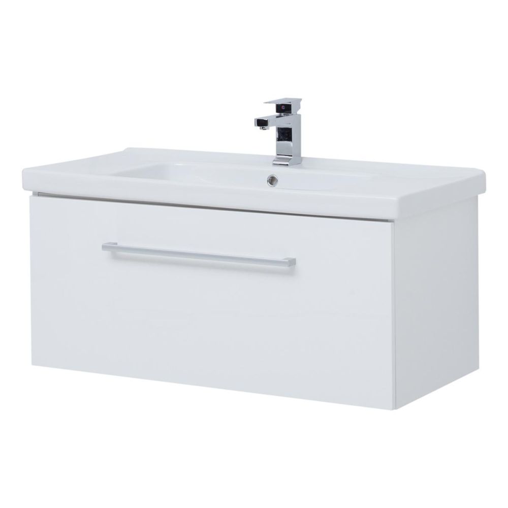 Тумба под раковину подвесная Dreja Big Inn 100 см, белый. Фурнитура: Hettich. Компоновка: 1 ящик + выдвижной внутренний ящик. Дополнительные функции: встроенный органайзер в верхнем ящике. Монтаж: подвесной.