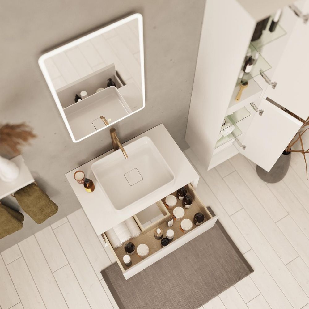 Тумба под раковину подвесная Dreja Insight 80 см, белый. Фурнитура: Hettich. Компоновка: 1 ящик. Дополнительные функции: встроенный органайзер . Монтаж: подвесной.
