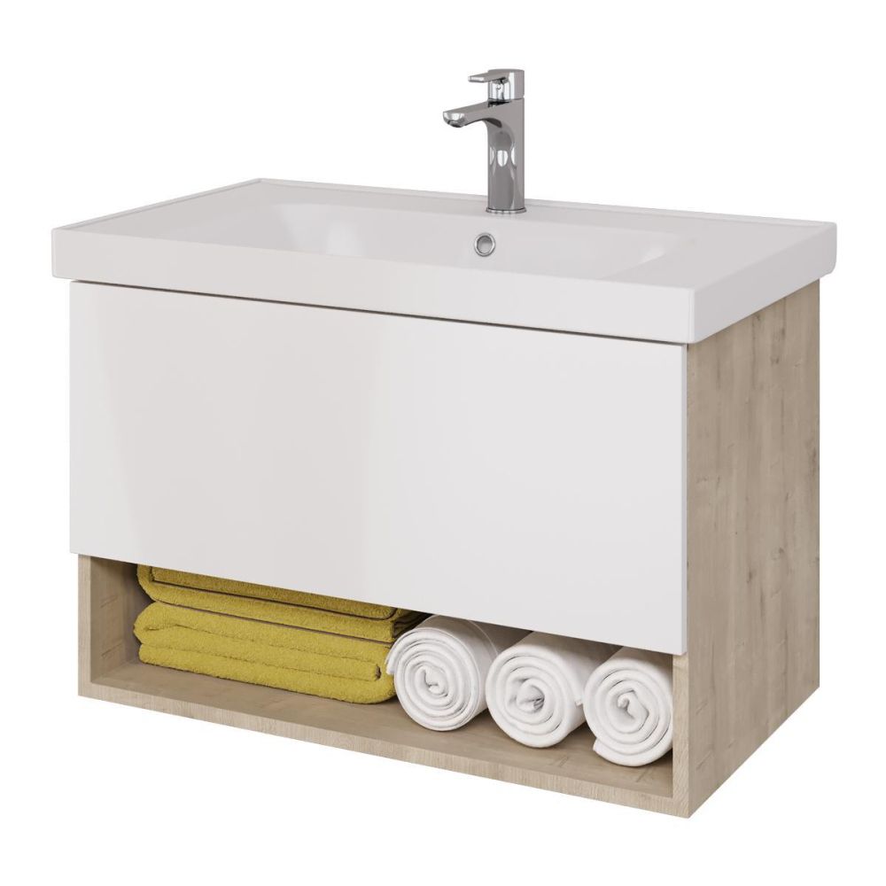 Тумба под раковину подвесная Dreja Perfecto 90 см, дуб эврика/белый. Фурнитура: Hettich. Компоновка: 1 ящик. Дополнительные функции: встроенный органайзер. Монтаж: подвесной.