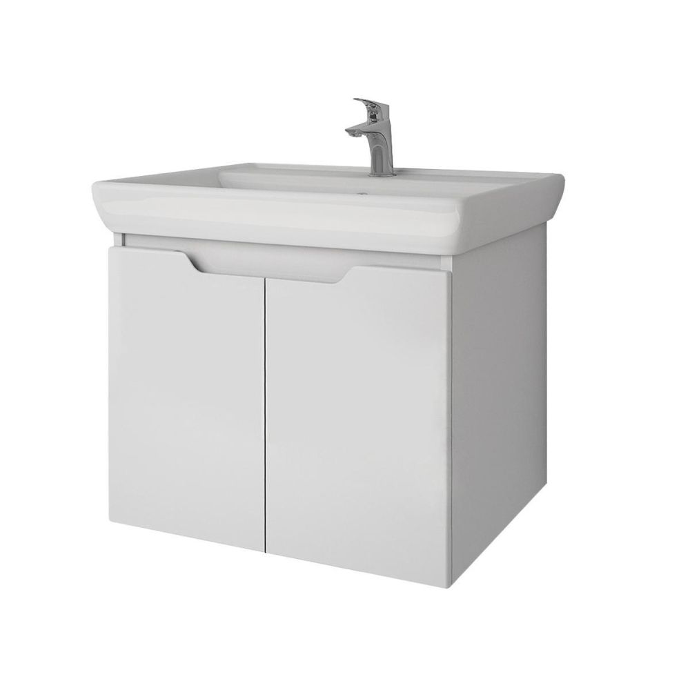 Тумба под раковину подвесная Dreja Q(D) 60 см, белый. Фурнитура: Hettich. Компоновка: 2 дверцы, 1 полка. Монтаж: подвесной.