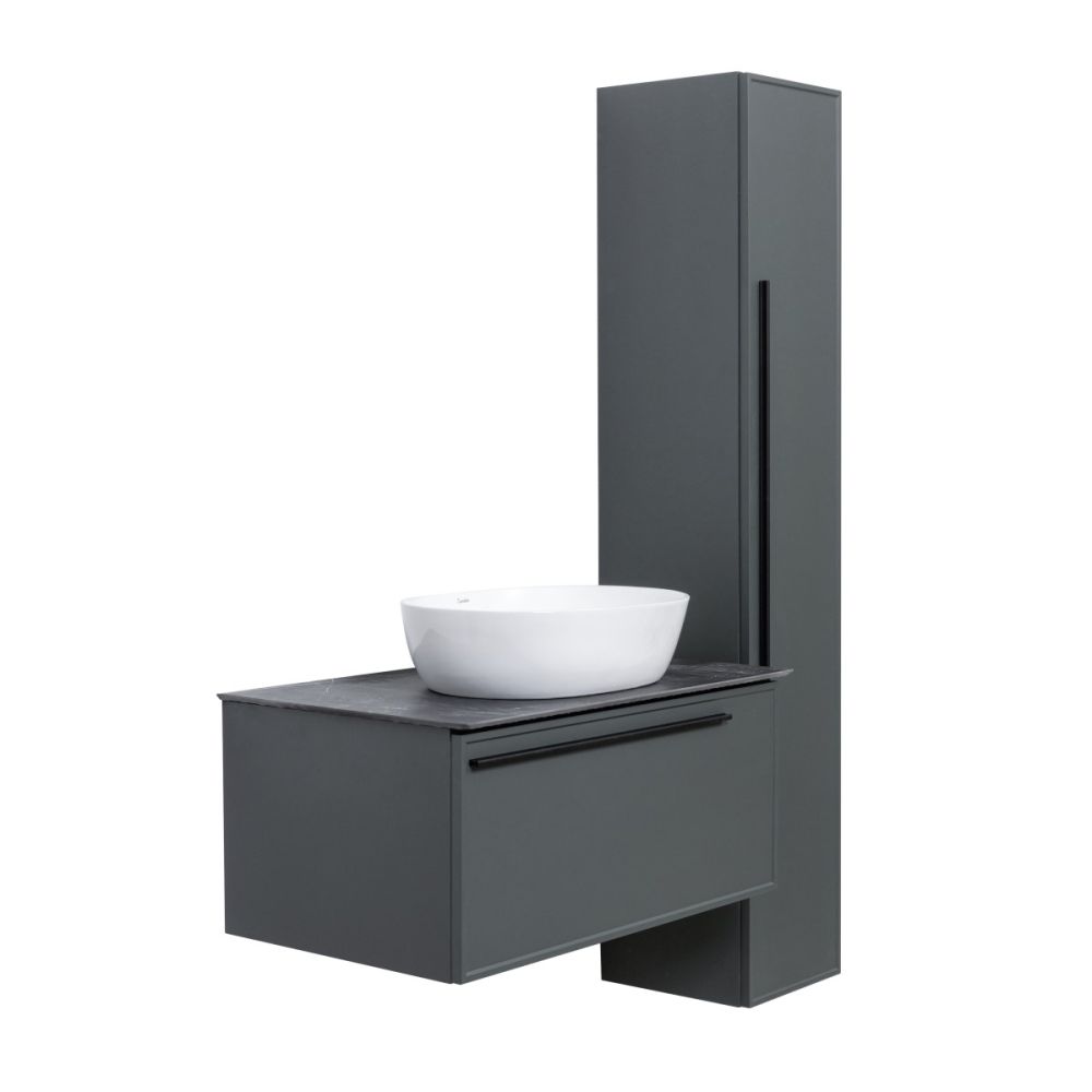 Подвесная тумба La Fenice Elba FNC-01-ELB-G-80 обладает рядом неоспоримых преимуществ. Тумбу можно оснастить встраиваемой раковиной (арт. CU.NN.80), либо же приобрести столешницу в подходящем цветовом решении (арт. FNC-03-PL01-80, FNC-03-VS03-80) и установить на неё раковину-чашу. За счет входящего в комплект сифона Prevex, тумба обладает полноценным ящиком для хранения (без выреза). Ящик выполнен в фантазийной цветовой гамме "Лён антрацит". Тумба оснащена скрытыми доводчиками плавного закрывания частичного выдвижения Samet (Турция) и подвесным регулируемым механизмом Camar (Италия). Фасад и корпус тумбы покрыты краской и матовым лаком, что является надёжной защитой от влаги. Прекрасным и функциональным дополнением к тумбе станет пенал La Fenice Elba серо-зеленого цвета FNC-05-ELB-G-30