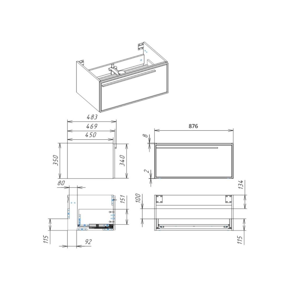 Тумба, ручка, сифон Prevex, набор для монтажа ( монтажная планка, дюбеля, саморезы) |