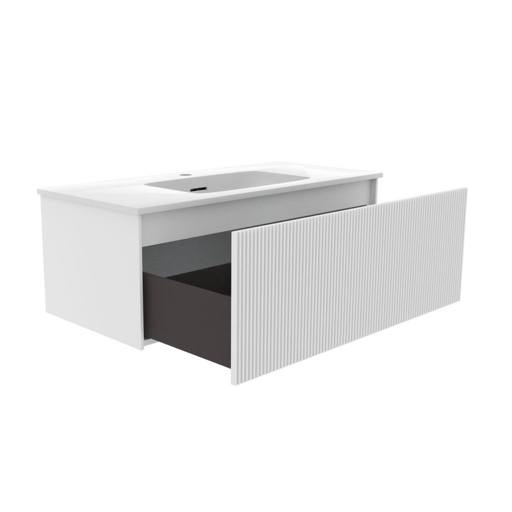 Подвесная тумба La Fenice Terra FNC-01-TER-B-100 обладает уникальным, ни на что не похожим дизайном. Запатентованная система Samet Push-Open Soft Close позволяет совмещать бесшумное закрывание и открытие при помощи касания. Фасад и корпус тумбы покрыты краской и матовым лаком, что является надёжной защитой от влаги. Ультратонкая и идеально ровная раковина вкупе с современным качеством тумбы позволят почувствовать незабываемый комфорт в ванной комнате. Прекрасным и функциональным дополнением к тумбе станет пенал La Fenice Terra белого цвета FNC-05-TER-B-30