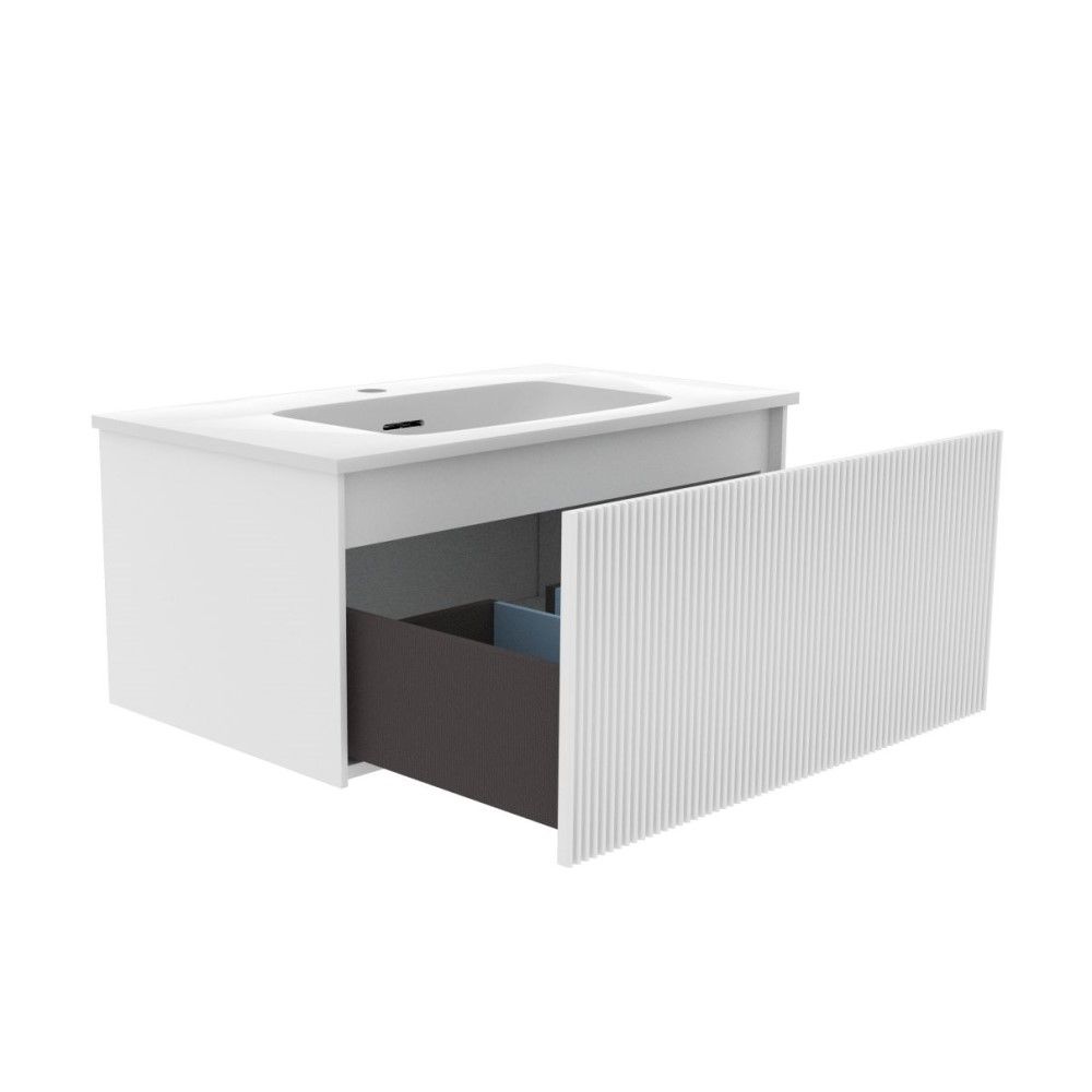 Подвесная тумба La Fenice Terra FNC-01-TER-B-80 обладает уникальным, ни на что не похожим дизайном. Запатентованная система Samet Push-Open Soft Close позволяет совмещать бесшумное закрывание и открытие при помощи касания. Фасад и корпус тумбы покрыты краской и матовым лаком, что является надёжной защитой от влаги. Ультратонкая и идеально ровная раковина вкупе с современным качеством тумбы позволят почувствовать незабываемый комфорт в ванной комнате. Прекрасным и функциональным дополнением к тумбе станет пенал La Fenice Terra белого цвета FNC-05-TER-B-30