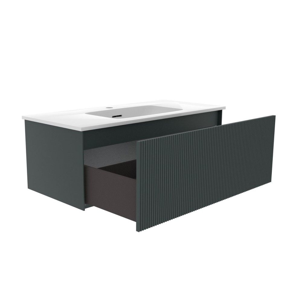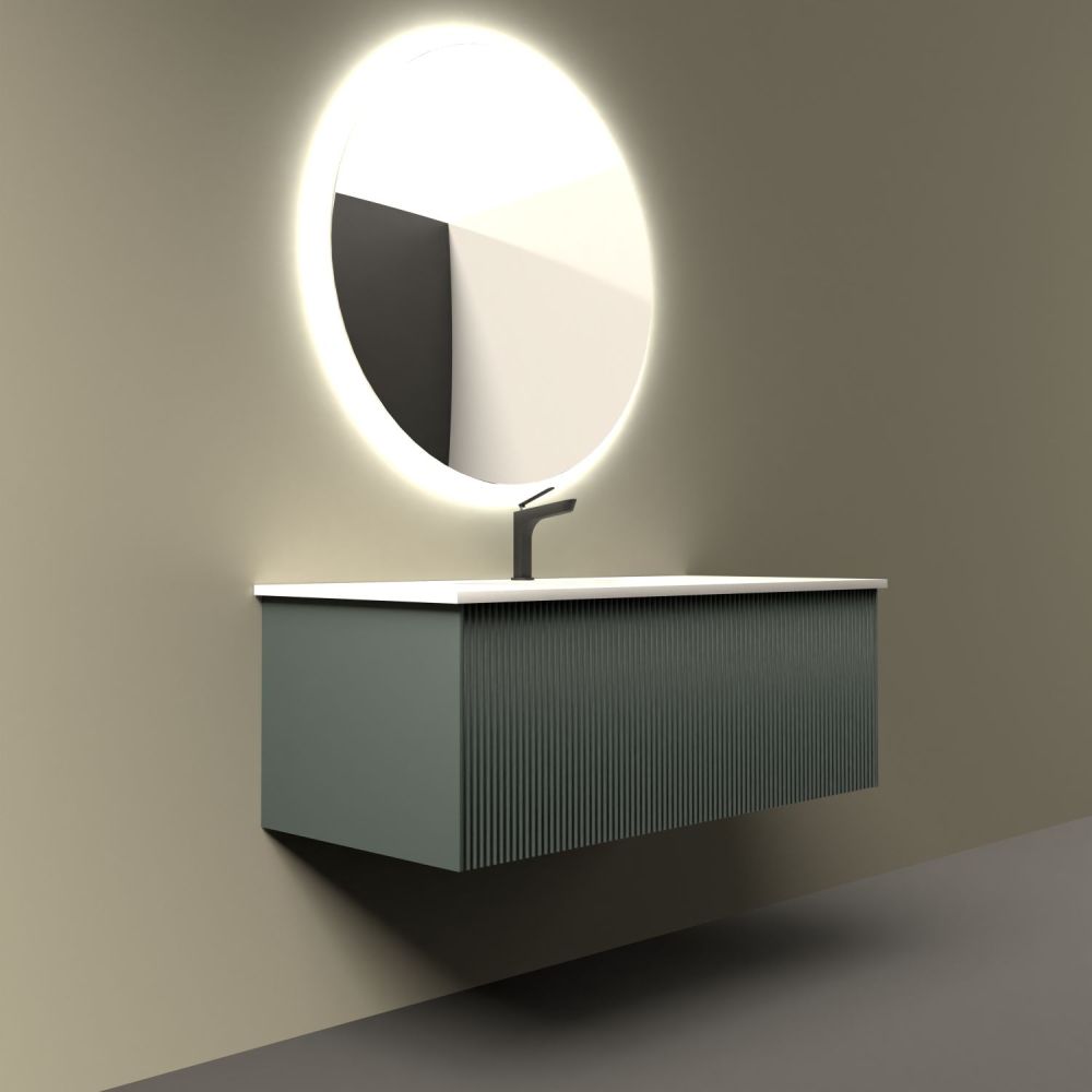 Подвесная тумба La Fenice Terra FNC-01-TER-G-100 обладает уникальным, ни на что не похожим дизайном. Запатентованная система Samet Push-Open Soft Close позволяет совмещать бесшумное закрывание и открытие при помощи касания. Фасад и корпус тумбы покрыты краской и матовым лаком, что является надёжной защитой от влаги. Ультратонкая и идеально ровная раковина вкупе с современным качеством тумбы позволят почувствовать незабываемый комфорт в ванной комнате. Прекрасным и функциональным дополнением к тумбе станет пенал La Fenice Terra серо-зеленого цвета FNC-05-TER-G-30