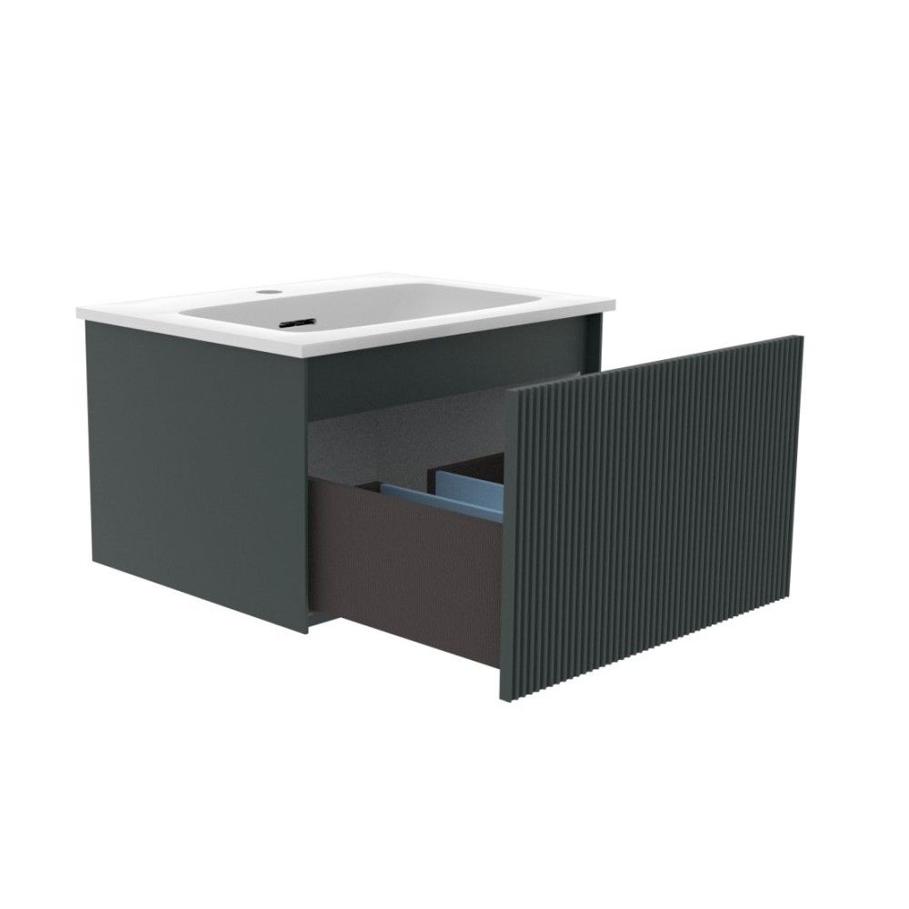 Подвесная тумба La Fenice Terra FNC-01-TER-G-60 обладает уникальным, ни на что не похожим дизайном. Запатентованная система Samet Push-Open Soft Close позволяет совмещать бесшумное закрывание и открытие при помощи касания. Фасад и корпус тумбы покрыты краской и матовым лаком, что является надёжной защитой от влаги. Ультратонкая и идеально ровная раковина вкупе с современным качеством тумбы позволят почувствовать незабываемый комфорт в ванной комнате. Прекрасным и функциональным дополнением к тумбе станет пенал La Fenice Terra серо-зеленого цвета FNC-05-TER-G-30