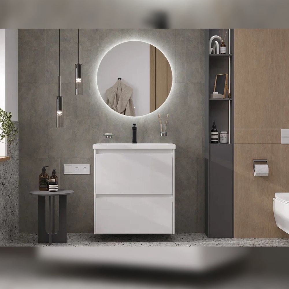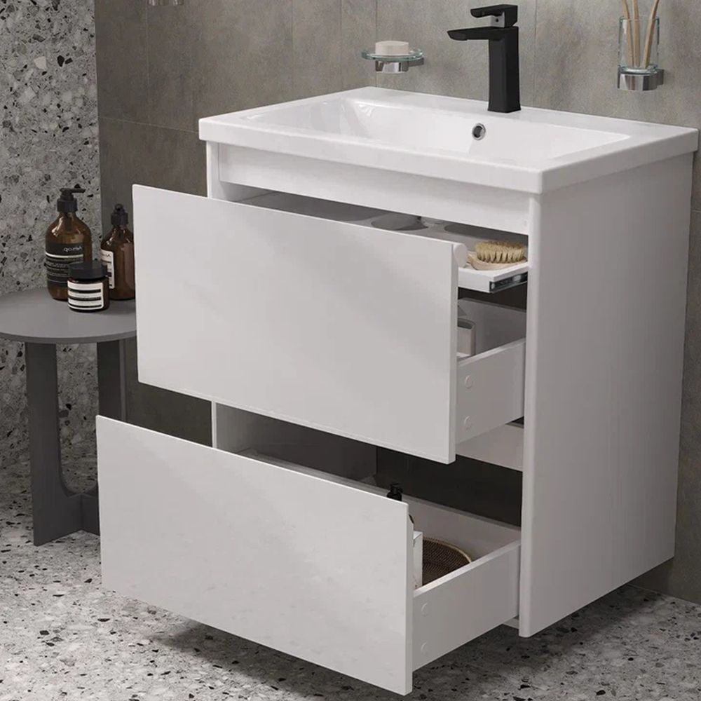 Тумба под раковину подвесная Velvex Klaufs tp.KLA.COM.70.2Y, 70 см: 2 выдвижных ящика, выдвижной органайзер.