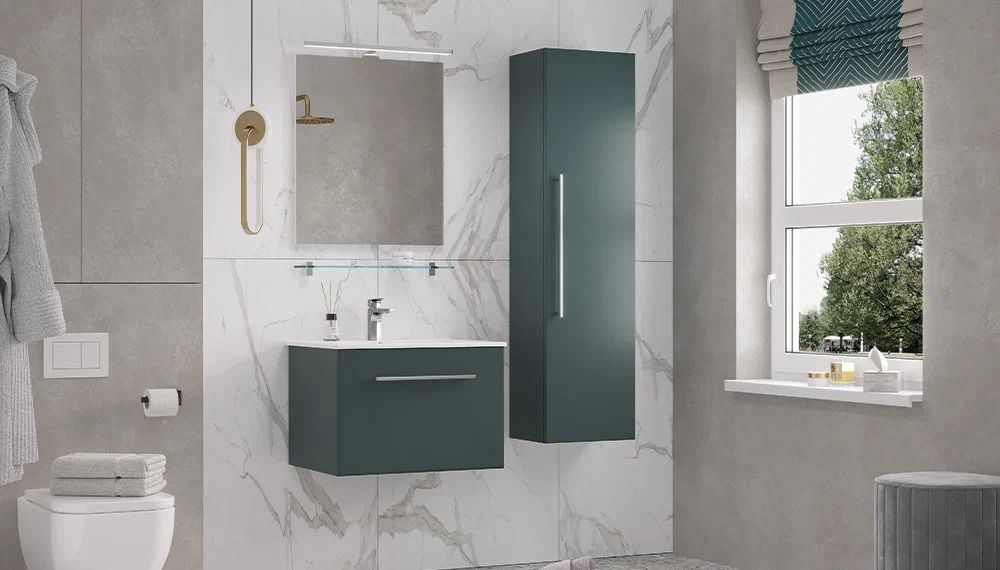 Тумба под раковину подвесная Velvex Posse tp.POS.OSK.65.1Y верде, 65 см: 1 выдвижной ящик с механизмом плавного закрывания.