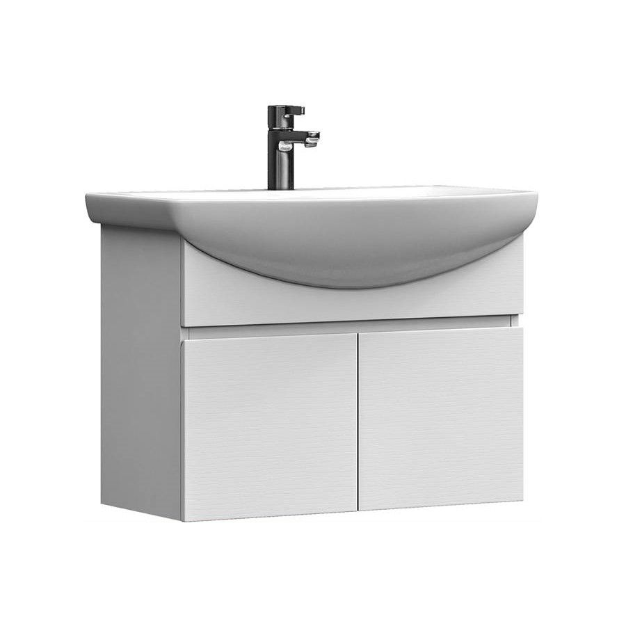 2 дверцы. Материал корпуса и фасада: влагостойкая ЛДСП Дверцы: петли с механизмом плавного закрывания Отсутствие лицевой фурнитуры – интегрированная в фасад ручка