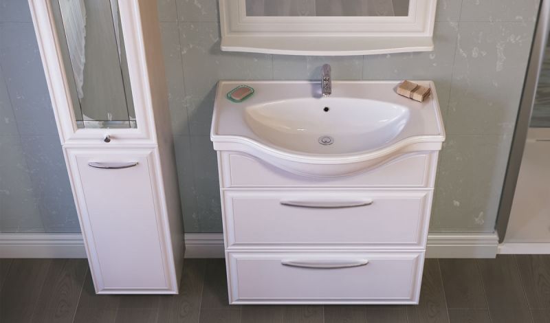 - Цвет тумбы: белый. Цвет фурнитуры: хром.