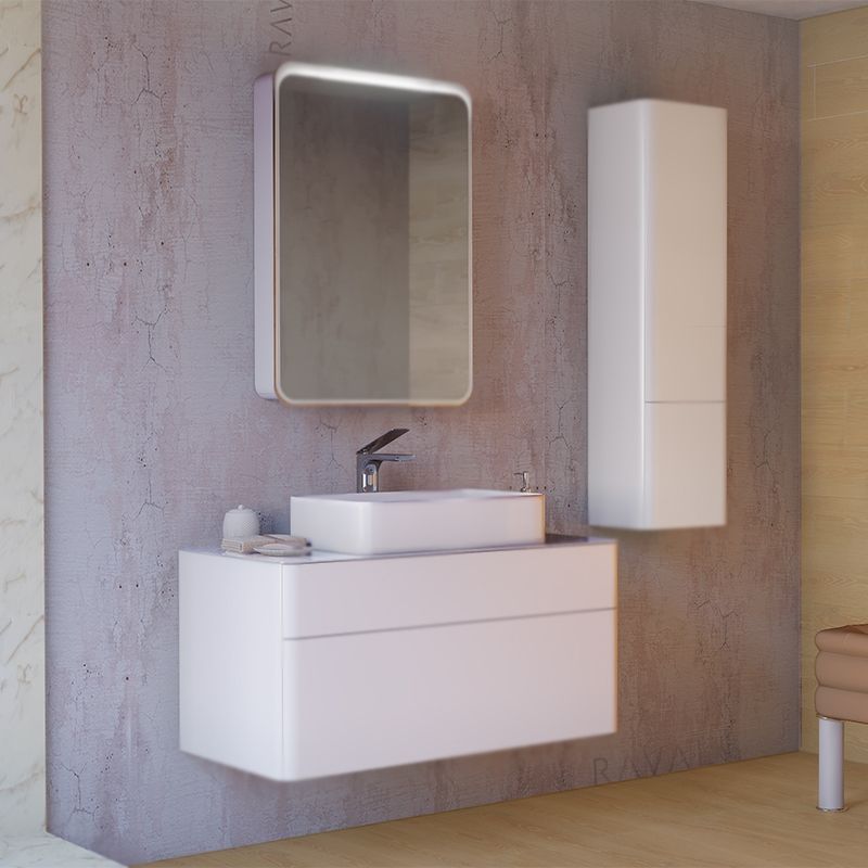 Подвесная тумба под раковину Raval Pure 100 Pur.01.100/P/W с гладкими формами, с двумя выдвижными ящиками со скрытым механизмом открывания Push to Open фирмы Hettich, со столешницей из стекла фирмы Lacobel. Предназначена для использования в ванных комнатах с повышенной влажностью. Влагостойкие и экологичные материалы, качественная работа фурнитуры, ударопрочность, приятные тактильные ощущения.
