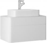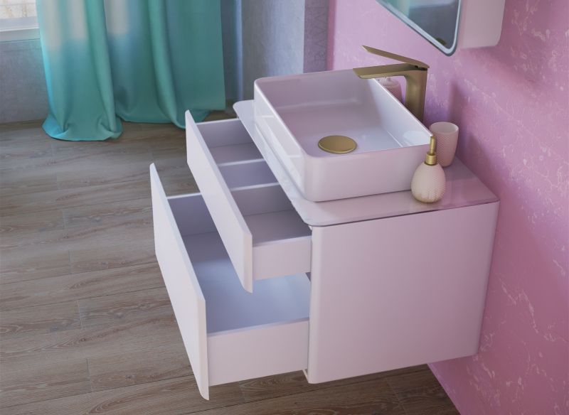 Подвесная тумба под раковину Raval Pure 80 Pur.01.80/P/W с гладкими формами, с двумя выдвижными ящиками со скрытым механизмом открывания Push to Open фирмы Hettich, со столешницей из стекла фирмы Lacobel. Предназначена для использования в ванных комнатах с повышенной влажностью. Влагостойкие и экологичные материалы, качественная работа фурнитуры, ударопрочность, приятные тактильные ощущения.