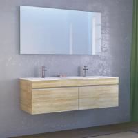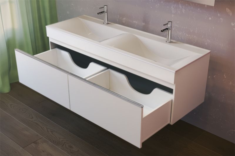 Подвесная тумба под двойную раковину Raval Twins 140 Twi.01.140/P/DS с двумя выдвижными ящиками оснащенными направляющими с доводчиками. Предназначена для использования в ванных комнатах с повышенной влажностью. Влагостойкие и экологичные материалы, качественная работа фурнитуры, ударопрочность, приятные тактильные ощущения.