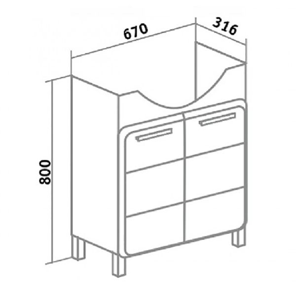 - Размеры (ШхВхГ): 670х800х316 мм.