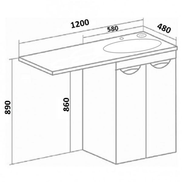 - Размеры тумбы (ШхВхГ): 580х860х480 мм.