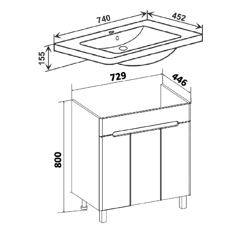 - Размеры (ШхВхГ): 729х800х446 мм.