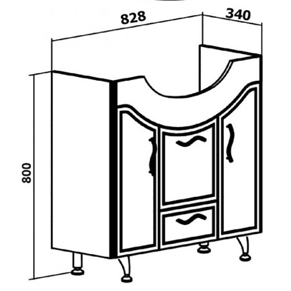 - Размеры (ШхВхГ): 828х800х340 мм.