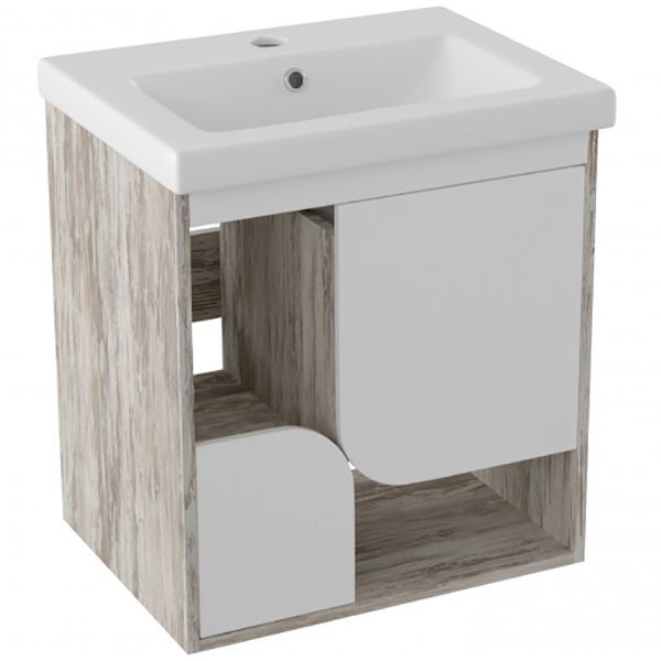- Организация хранения: один распашной фасад и нижний выдвижной ящик справа.