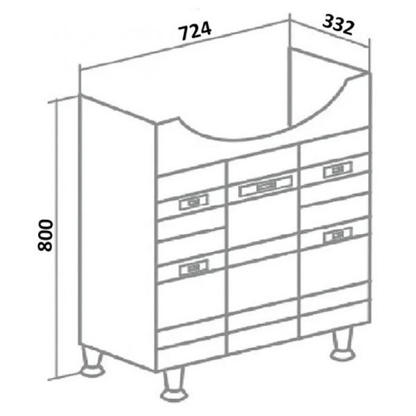 - Размеры (ШхВхГ): 724х800х332 мм.