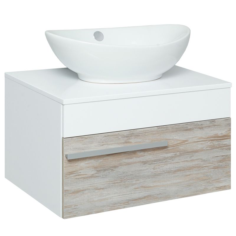 Благодаря универсальному отверстию на столешнице тумба может комплектоваться различными вариантами накладных раковин c глубокой чашей и высокими бортиками, которые отражают современные тренды в дизайне.